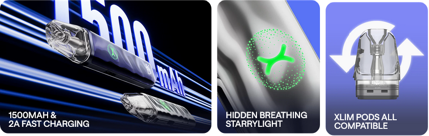Okrem toho je to veľmi ľahko použiteľné zariadenie s nastaviteľným prúdením vzduchu a plnou kompatibilitou s pod cartridge série Xlim a EZ, vďaka čomu je ideálnou voľbou pre začiatočníkov aj pre tých, ktorí hľadajú výkonné, všestranné a štýlové vapingové zariadenie.