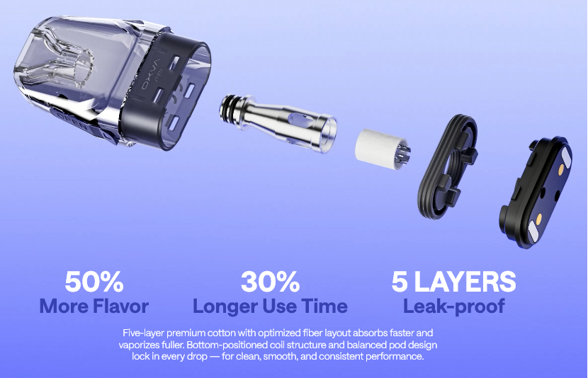 Vďaka batérii s kapacitou 1500mAh a 2ml plniacou pod cartridge s vrchným plnením, zaručuje OXVA Xlim Go 2 dlhšiu výdrž batérie a menej dopĺňania. Jeho inovatívna technológia UNITECH 2.0 poskytuje jemnejšiu paru a konzistentnú chuť v každom potiahnutí, zatiaľ čo skryté LED svetlo reaguje na každé vdýchnutie a dodáva mu dynamický a moderný nádych.