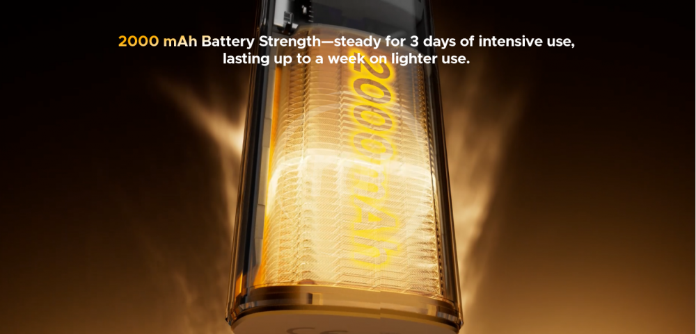 Integrovaná batéria Ultra Endurance Lithium Power s kapacitou 2000mAh poskytuje mimoriadnu výdrž - pri intenzívnom používaní až tri dni a pri ľahkom režime dokáže fungovať pokojne celý týždeň bez nabíjania. Maximálny výkon 40W zaisťuje vyvážený MTL aj RDL prejav a stabilnú dodávku výkonu v každom ťahu.