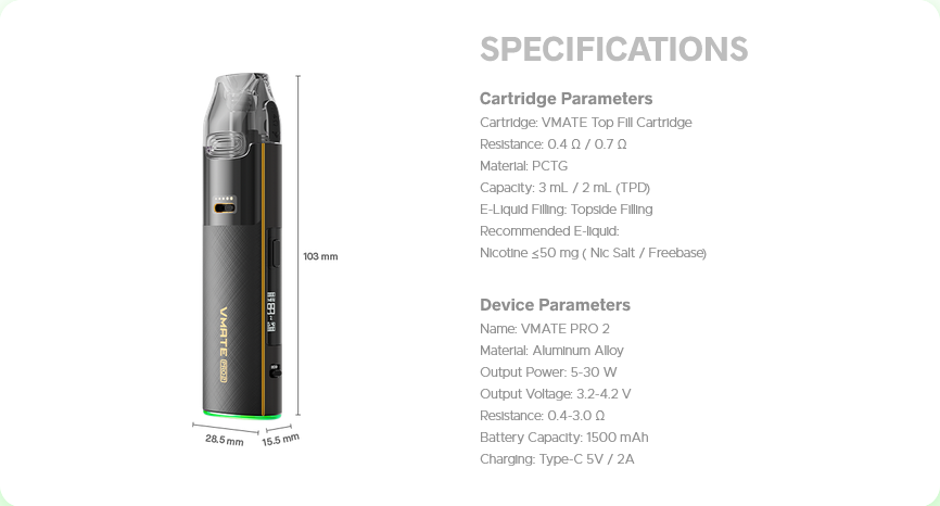 Kompatibilita s cartridgemi Vmate 0.4? a 0.7? zaručuje univerzálne použitie.
